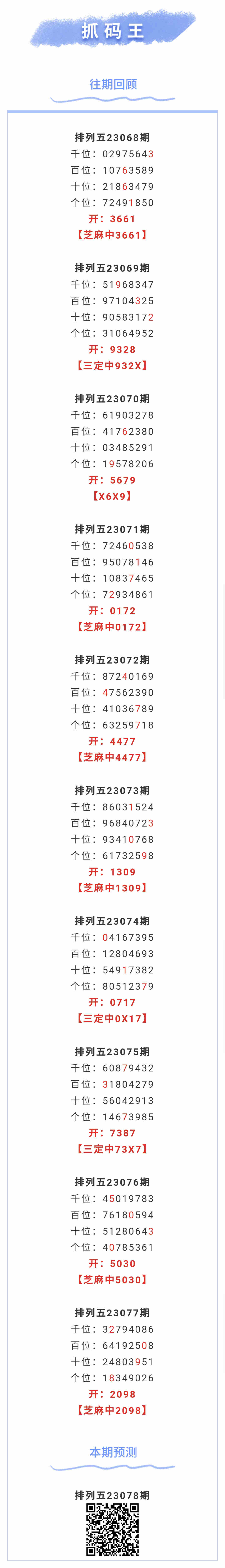 【排列五-078期】2连中!上期芝麻中2098,芝麻近10中6;本月圈中14次芝麻! 发表于:2023-03-29 11:08:23 浏览次数:424 上一篇: 下一篇:没有了 【沧海一声笑】 范围码14红10 更新中 【独胆英雄】 范围码14红10 更新中 【牛哥出品】 范围码14红9 更新中 排列五杀码荣誉榜