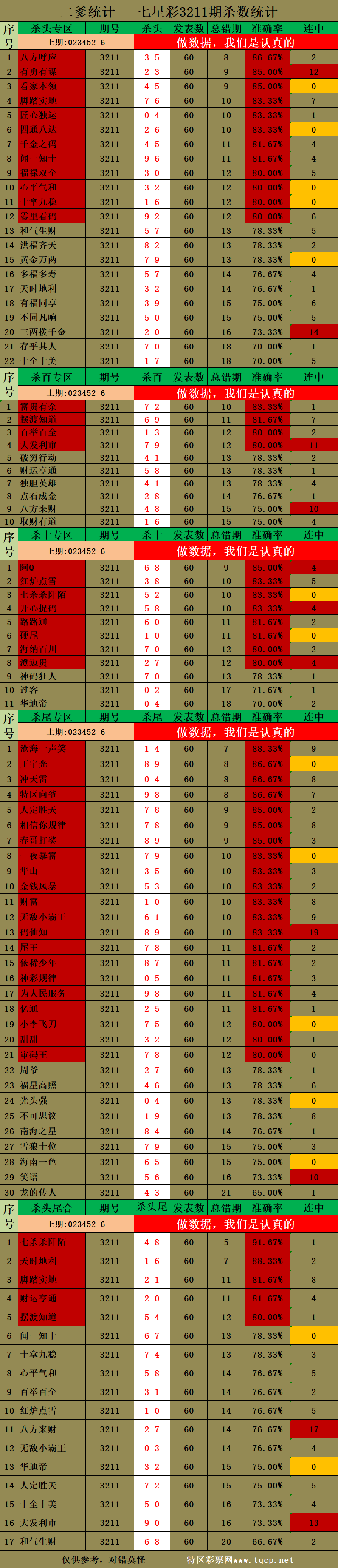 3211期:二爹统计 发表于:2025-07-09 10:43:34 浏览次数:531 上一篇: 下一篇:3211期:红哥统计 【红炉点雪】 范围码15红13 点播25334期 【无敌通杀】 范围码15红9 点播25334期 【码上有米】 范围码15红9 点播25334期 七星彩杀码荣誉榜