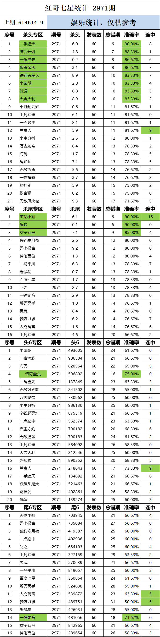 2971期:红哥统计 发表于:2023-12-04 09:39:29 浏览次数:557 上一篇: 下一篇:2971期:二爹统计 【红炉点雪】 范围码15红13 点播25334期 【无敌通杀】 范围码15红9 点播25334期 【码上有米】 范围码15红9 点播25334期 七星彩杀码荣誉榜