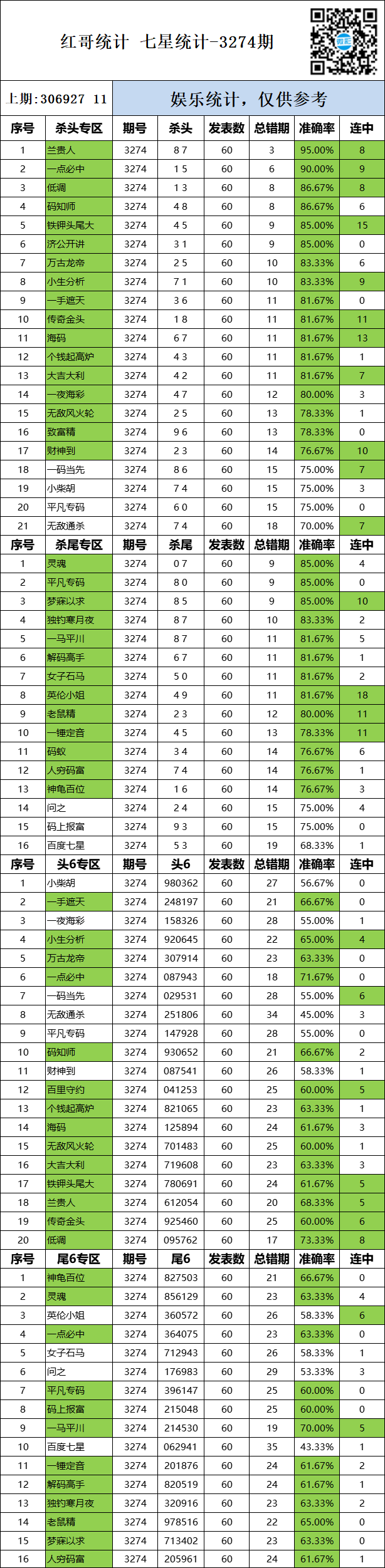3274期:红哥统计 发表于:2025-12-06 12:03:25 浏览次数:477 上一篇:“景天”选十复式红10码;“有影学长” 一注选一红 (5连红) 下一篇:3274期:二爹统计 【红炉点雪】 范围码15红12 点播25335期 【码上有米】 范围码14红9 更新中 【码上收米】 范围码14红9 更新中 排列五杀码荣誉榜