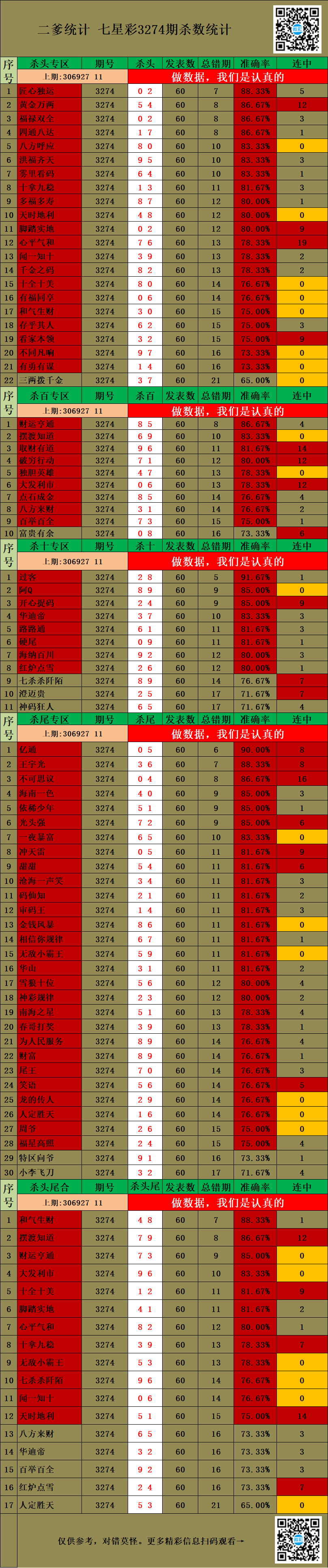 3274期:二爹统计 发表于:2025-12-06 12:03:43 浏览次数:486 上一篇:3274期:红哥统计 下一篇:3274期:红哥统计 【红炉点雪】 范围码15红11 点播25336期 【财富】 范围码15红9 点播25336期 【沧海一声笑】 范围码15红9 点播25336期 排列五杀码荣誉榜