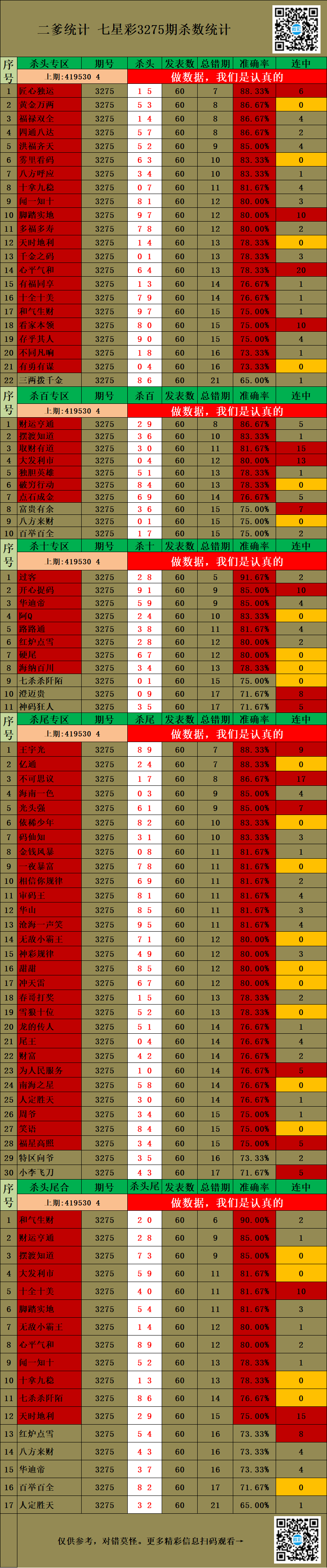 3275期:二爹统计 发表于:2025-12-08 12:09:05 浏览次数:498 上一篇:3275期:红哥统计 下一篇:3275期:红哥统计 【红炉点雪】 范围码14红12 更新中 【码上有米】 范围码14红9 更新中 【码上收米】 范围码14红9 更新中 排列五杀码荣誉榜