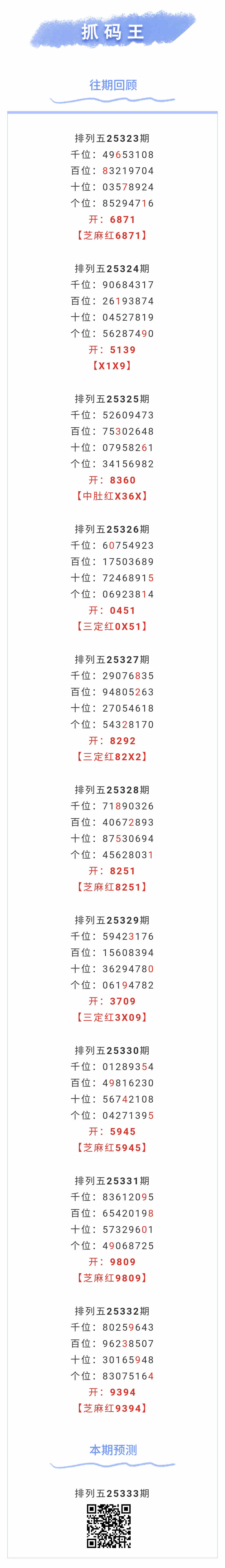 【排列五-25333期】芝麻3连红!本月圈红6次芝麻,芝麻近10红5;上期芝麻红9394 发表于:2025-12-13 11:18:04 浏览次数:301 上一篇: 下一篇:没有了 【红炉点雪】 范围码15红12 点播25335期 【码上有米】 范围码14红9 更新中 【码上收米】 范围码14红9 更新中 排列五杀码荣誉榜