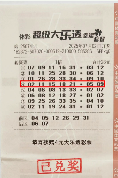 当天,穆先生到体彩店购买彩票时,顺便去兑奖。在销售员的推荐下,他了解到超级大乐透套餐票赠票活动:购买28元套餐票可随机获赠一张4元的超级大乐透彩票。这种新颖的玩法吸引了他,于是他决定尝试一下。没想到,这张套餐票竟然中了二等奖。