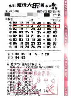 6月16日晚,体彩大乐透第25067期的开奖中,平顶山市郏县冢头镇派出所门口的体彩实体店幸运中出一注二等奖,奖金超过10万元。这注大奖来自一张28元的赠票。中奖者李先生(化姓)于次日上午前往河南体彩平顶山分中心领取奖金。李先生表示,当天他购买了88元的套餐票,并且参加了河南体彩的大乐透赠票活动,获赠了一张28元的大乐透套餐票。令人惊讶的是,这张赠票的第2注号码竟然中了当期二等奖。