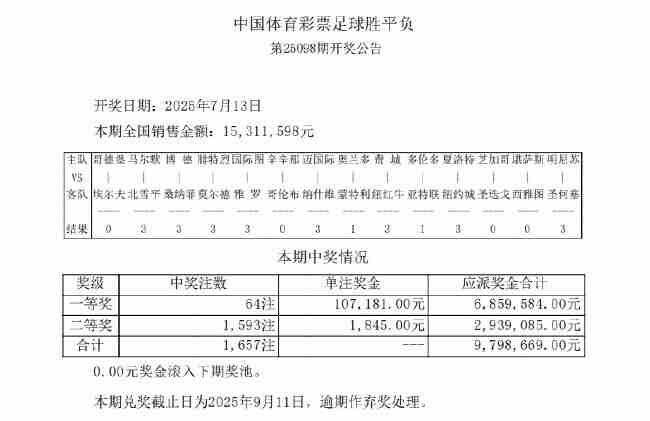本期兑奖截止日为2025年9月11日,逾期作弃奖处理。