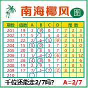 “南海椰风”第3210期推荐版局规律,本期千位27走三步.