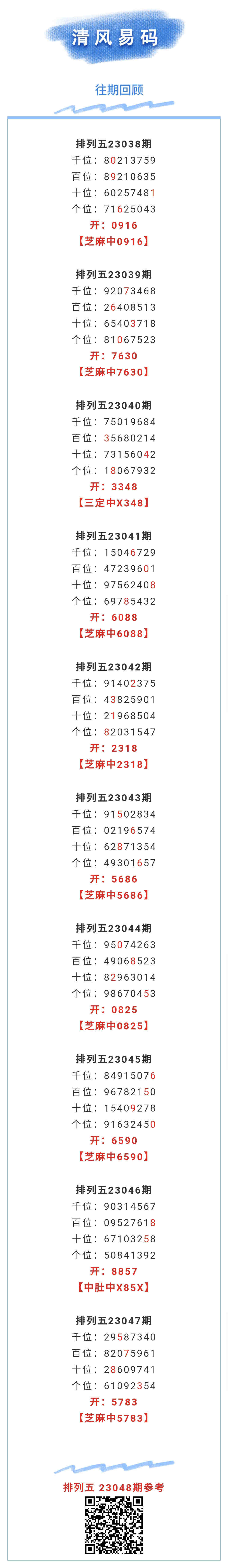 【排列五-048期】上期芝麻中5783,芝麻近10中8;本月圈中14次芝麻! 发表于:2023-02-27 10:55:45 浏览次数:1264 上一篇: 下一篇:没有了 【红炉点雪】 范围码15红13 点播25334期 【无敌通杀】 范围码15红9 点播25334期 【码上有米】 范围码15红9 点播25334期 七星彩杀码荣誉榜