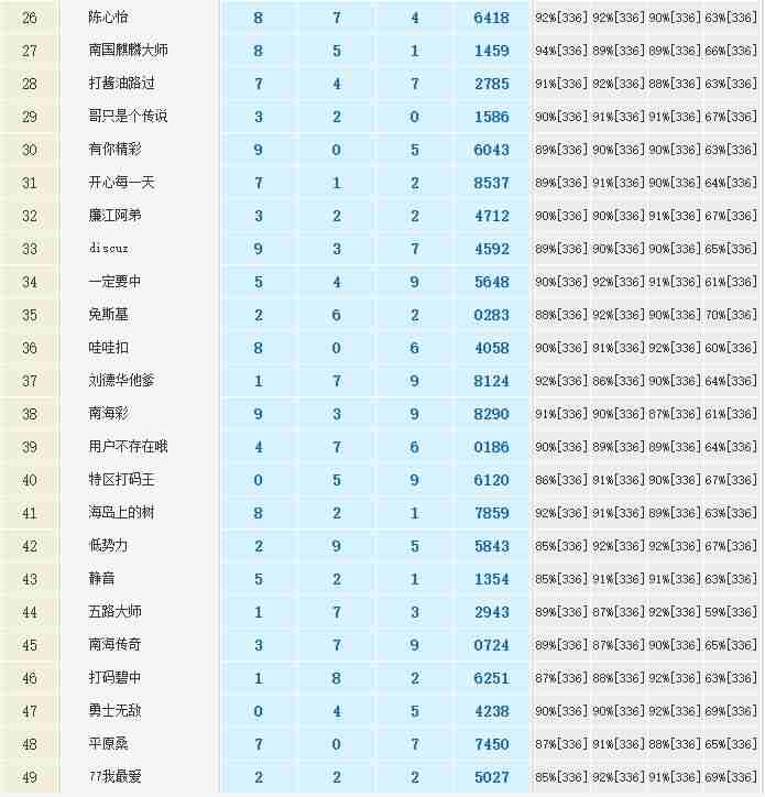 七星彩2954期特区杀一头一尾统计 发表于:2023-10-26 15:50:39 浏览次数:1616 详情登录https://www.tqcp.net/twtj_sj.php 上一篇:七星彩2954期特区杀三头三尾统计 下一篇:七星彩2954期特区杀二头二尾统计 【红炉点雪】 范围码15红12 点播25335期 【码上有米】 范围码14红9 更新中 【码上收米】 范围码14红9 更新中 七星彩杀码荣誉榜