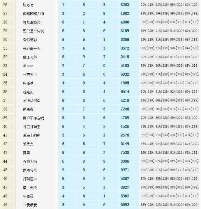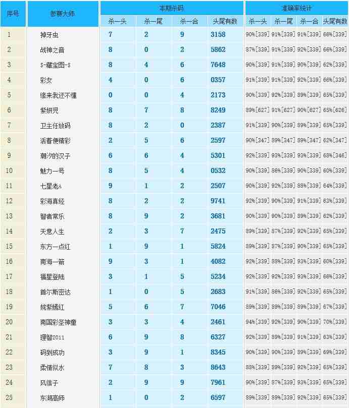七星彩2957期特区杀一头一尾统计 发表于:2023-11-02 14:43:06 浏览次数:1554 详情登录https://www.tqcp.net/twtj_sj.php 上一篇:七星彩2957期特区杀二头二尾统计 下一篇:七星彩2957期特区杀三头三尾统计 【红炉点雪】 范围码15红12 点播25335期 【码上有米】 范围码14红9 更新中 【码上收米】 范围码14红9 更新中 七星彩杀码荣誉榜