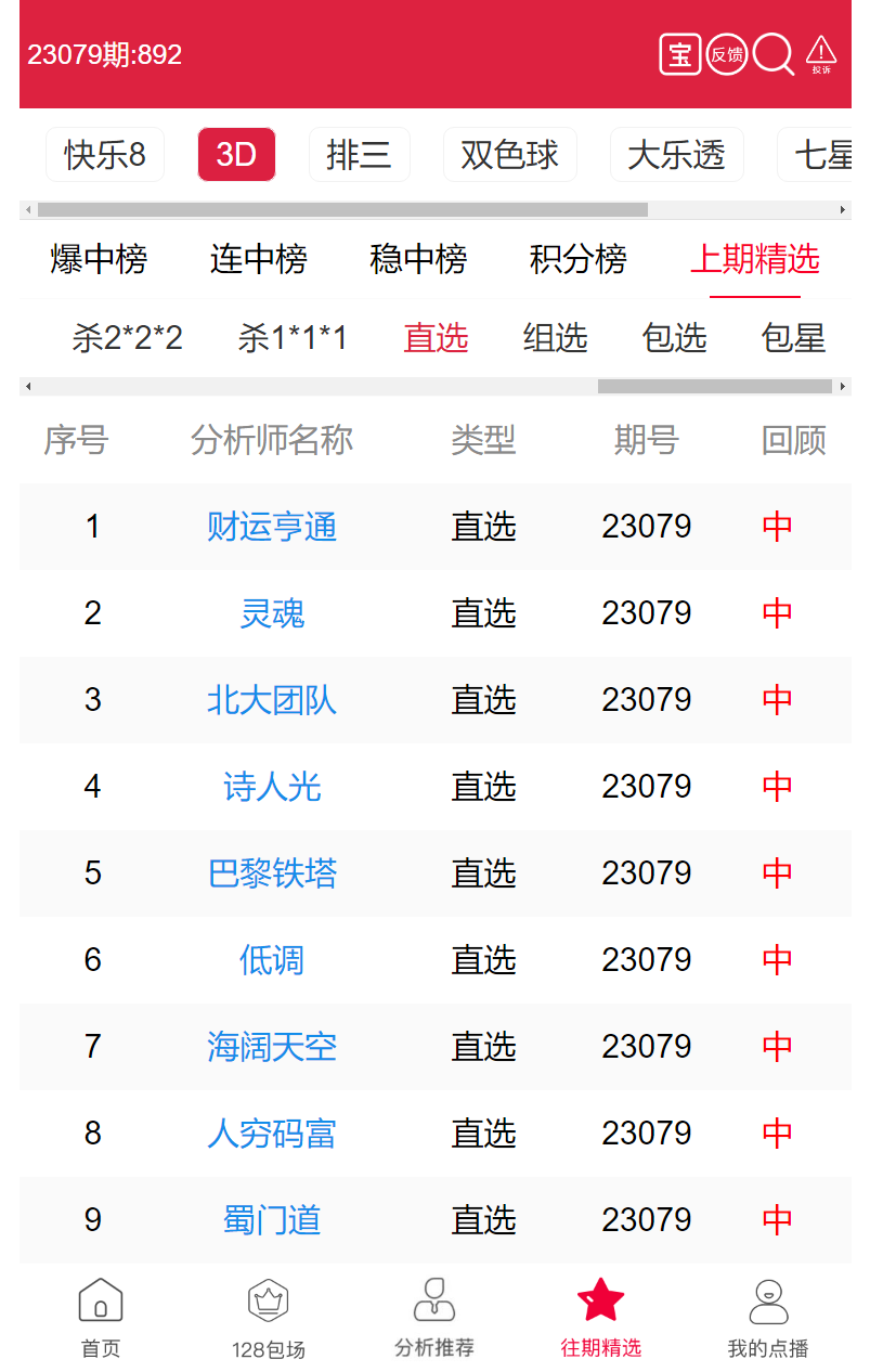 23080期:福彩3D 财运亨通、灵魂 等9位老师命中直选!