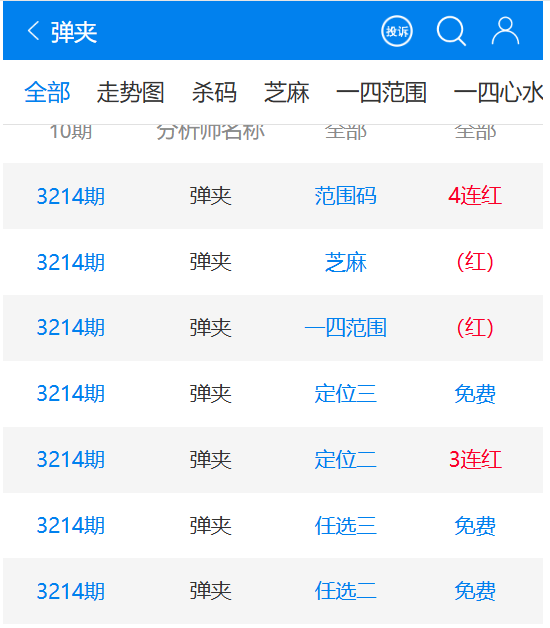 七星彩3215期点播推荐步步为赢、一点必中和弹夹 3位分析师 发表于:2025-07-19 16:41:30 浏览次数:472 上一篇:排列五25190期点播推荐神龟百位,预测师和王宇光 3位分析师 下一篇:七星彩3215期特区杀三头三尾统计 【春哥打奖】 范围码15红11 点播26030期 【天意人生】 范围码15红9 点播26030期 【彩女】 范围码15红9 点播26030期 七星彩杀码荣誉榜