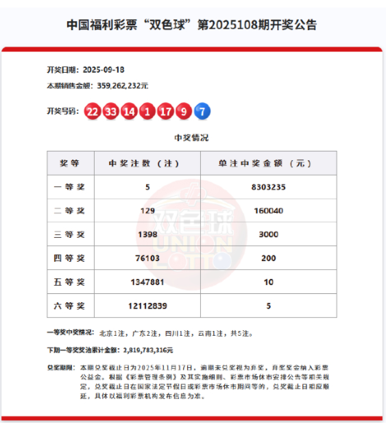 北京时间2025年9月18日,福彩双色球第25108期开奖,以下是详细开奖流程: