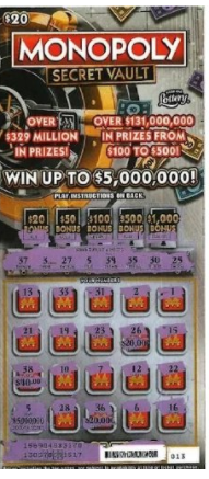 “MONOPOLY SECRET VAULT”彩票于去年7月在美国推出,单张售价20美元,奖金从20美元到500万美元不等。中奖当天,朱迪思外出买日用品时顺手刮奖,根本没想到会中奖。官方表示,这款彩票在全美总共设有四个500万头奖,中奖概率大约是556万分之一,而朱迪思中了其中的第三个。
