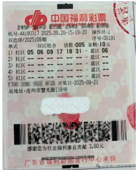 9月2日,清远市连州市慧光路的福利彩票44180317销售网点迎来了一位幸运彩民,成功中得双色球一等奖,奖金高达811万余元。接着,9月21日,同一网点再次传来喜讯,幸运彩民李先生(化姓)中得5注双色球二等奖,总奖金达到466,915元。9月28日,李先生亲自来到清远市福利彩票发行中心领取奖金。