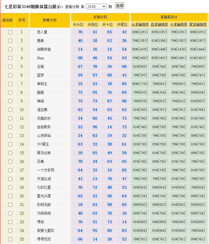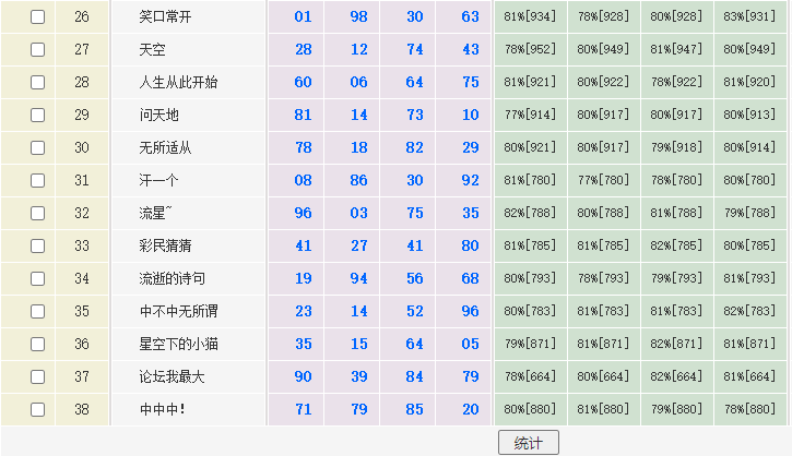 七星彩3248期特区杀二头二尾统计 发表于:2025-10-06 18:45:38 浏览次数:423 上一篇:七星彩3248期特区杀一头一尾统计 下一篇:七星彩3248期特区杀三头三尾统计 【春哥打奖】 范围码15红11 点播26030期 【天意人生】 范围码15红9 点播26030期 【彩女】 范围码15红9 点播26030期 七星彩杀码荣誉榜