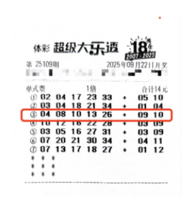 张先生笑着分享自己的购彩习惯:“过年选号图个好彩头,定好之后就不轻易更换,每期都按计划购买,就像给生活留个固定的小期待。”正是这份“每年一选、全年坚守”的执着,让他在第25109期收获了1000万元大奖。张先生表示,购买彩票多年,他已将其视为生活的一部分,未来仍会继续购买大乐透,而奖金则将用于改善家居生活,让日子更舒心。