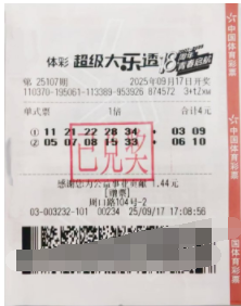 9月17日晚,超级大乐透第25107期开奖,前区号码为“05、07、08、15、33”,后区号码为“06、10”。本期全国共开出7注一等奖,其中山东青岛便中得了2注一等奖。