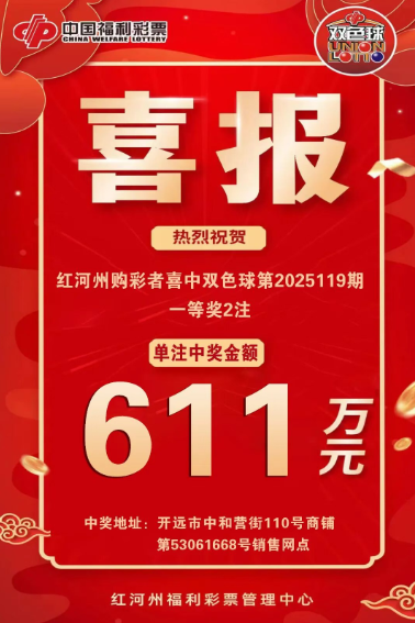 红河州喜中双色球一等奖两注 每注奖金611万元