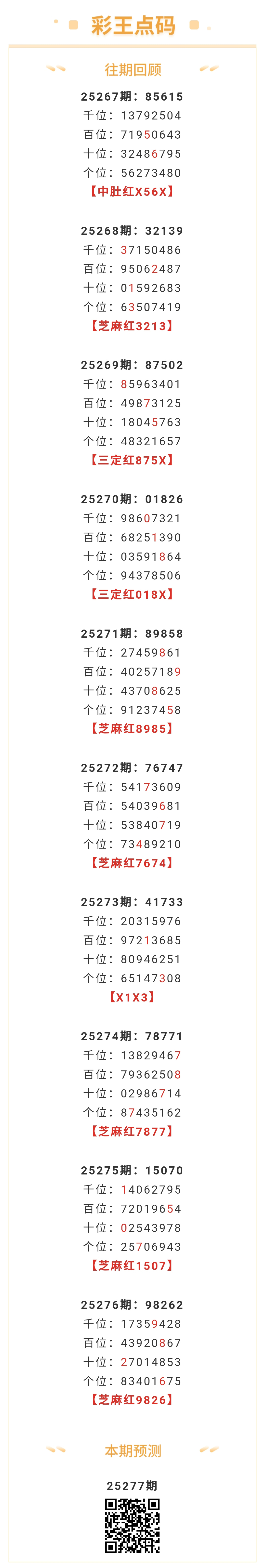 【排列五-277期】芝麻3连红!本月圈红8次芝麻,芝麻近10红6;上期芝麻红9826 发表于:2025-10-18 10:53:12 浏览次数:321 上一篇: 下一篇:没有了 【无敌通杀】 范围码15红10 点播25327期 【笑语】 范围码15红9 点播25327期 【天时地利】 范围码15红9 点播25327期 七星彩杀码荣誉榜