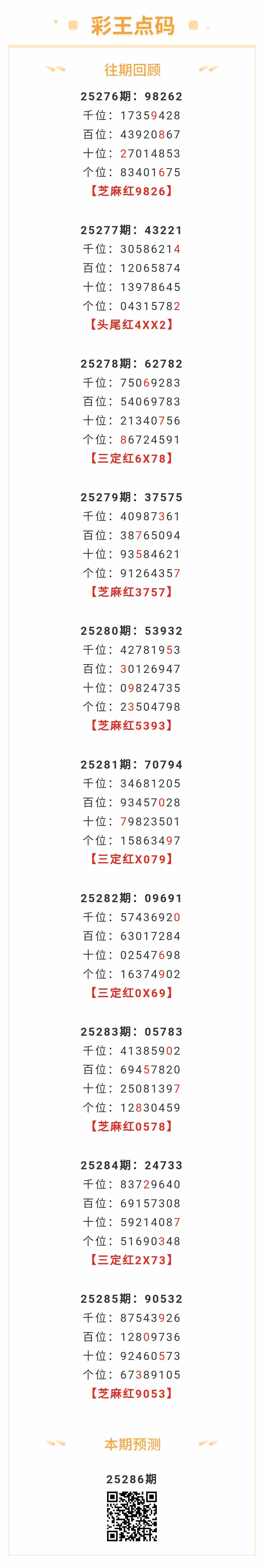 【排列五-25286期】本月圈红12次芝麻,芝麻近10红5;上期芝麻红9053 发表于:2025-10-27 11:32:18 浏览次数:322 上一篇: 下一篇:没有了 【红炉点雪】 范围码15红10 点播25331期 【无敌通杀】 范围码15红9 点播25331期 【一手遮天】 范围码15红9 点播25331期 七星彩杀码荣誉榜