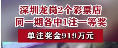 深圳彩民喜中超1800万元大奖
