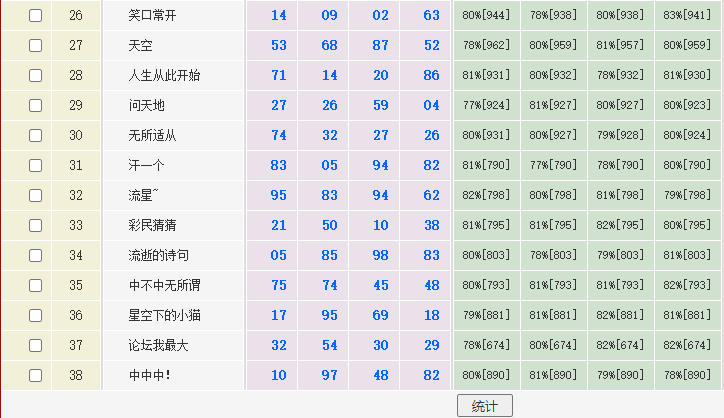 七星彩3258期特区杀二头二尾统计 发表于:2025-10-29 16:14:17 浏览次数:372 上一篇:七星彩3258期特区杀一头一尾统计 下一篇:七星彩3258期特区杀三头三尾统计 【笑语】 范围码14红10 更新中 【天时地利】 范围码14红9 更新中 【无敌通杀】 范围码14红9 更新中 七星彩杀码荣誉榜