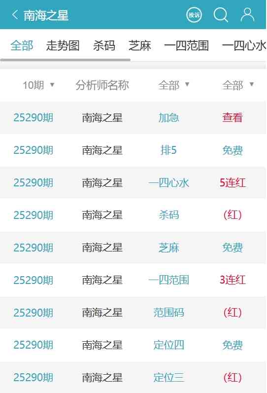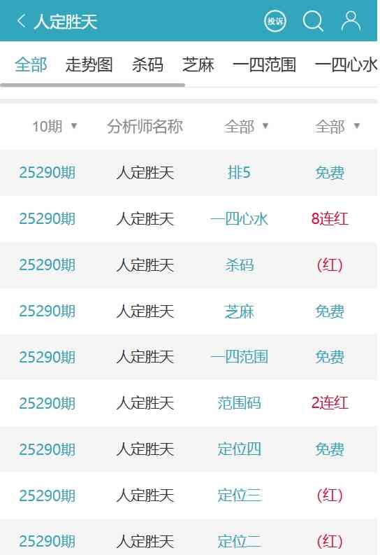 排列五25291期点播推荐人定胜天,小宇和南海之星 3位分析师 发表于:2025-11-01 16:54:30 浏览次数:363 上一篇: 下一篇:七星彩3259期点播推荐在现江湖、无敌风火轮和凉皮 3位分析师 【红炉点雪】 范围码15红11 点播25336期 【财富】 范围码15红9 点播25336期 【沧海一声笑】 范围码15红9 点播25336期 七星彩杀码荣誉榜
