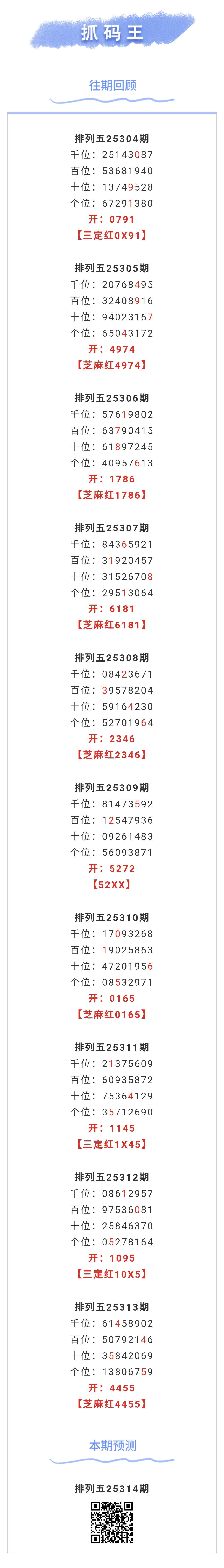 【排列五-25314期】本月圈红13次芝麻,芝麻近10红6;上期芝麻红4455 发表于:2025-11-24 11:24:31 浏览次数:304 上一篇: 下一篇:没有了 【笑语】 范围码15红10 点播25326期 【天时地利】 范围码15红9 点播25326期 【无敌通杀】 范围码15红9 点播25326期 七星彩杀码荣誉榜
