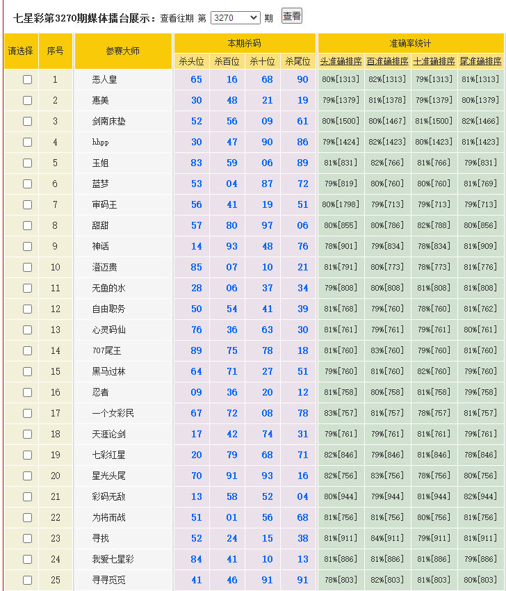 七星彩3270期特区杀二头二尾统计 发表于:2025-11-26 13:06:00 浏览次数:360 上一篇:七星彩3270期特区杀一头一尾统计 下一篇:七星彩3270期特区杀三头三尾统计 【笑语】 范围码15红11 点播25325期 【在现江湖】 范围码15红9 点播25325期 【天时地利】 范围码15红9 点播25325期 七星彩杀码荣誉榜