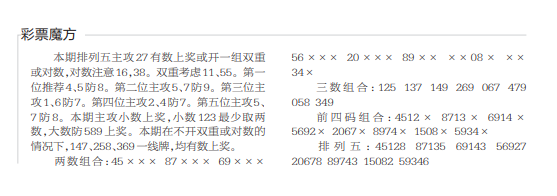 26014期:彩票魔方 发表于:2026-01-14 17:44:41 浏览次数:450 上一篇:26014期:五码奔腾 下一篇:排列五26014期点播推荐木子拼未来,财运亨通和有勇有谋 三位分析师 【主攻头】 范围码15红10 点播26029期 【春哥打奖】 范围码15红10 点播26029期 【金山银山】 范围码15红9 点播26029期 七星彩杀码荣誉榜