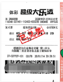 1月14日晚,体彩超级大乐透第26006期开奖号码揭晓,前区05、12、18、23、35,后区06、12的组合。一张出自亳州市涡阳县向阳路3427027727体彩门店的504元大乐透复式票中得一等奖追加1注,奖金合计1229万元。