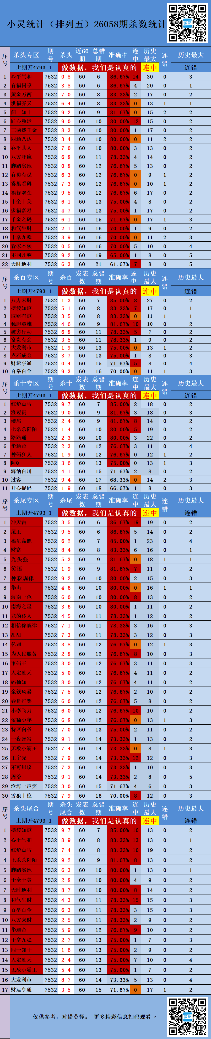 排列五26058期吉祥统计