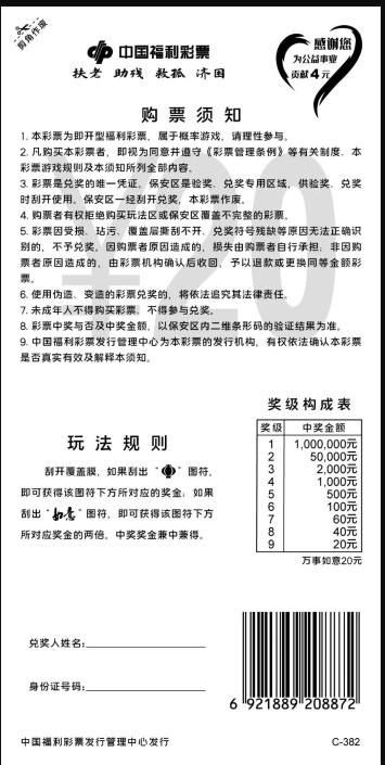 如果您观察手中的福利彩票,就会发现一些有趣的信息:从公益信息到防伪标识,从理性提醒到保管须知……票面上的细节,默默传递着福彩的责任和初心。下面让我们一起了解彩票票面的提示信息。