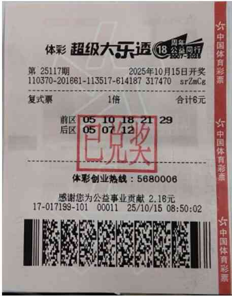 10月15日晚,威海购彩者王先生(化姓)凭借一张6元的大乐透复式票,幸运收获大乐透第25117期一等奖,奖金752万元。这份从天而降的惊喜,为他的生活带来了意外的精彩。