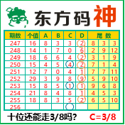 “东方码神”第3256期推荐此隔板规律,本期推荐“38十位”.