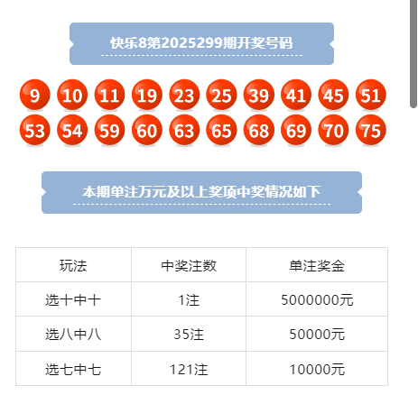 快乐8开出“选十中十”一等奖 中奖奖金500万
