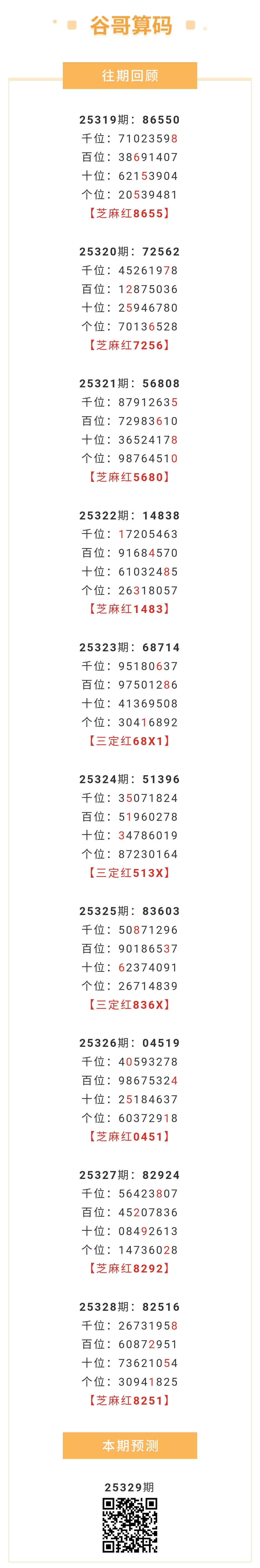 【排列五-25329期】芝麻3连红!本月圈红5次芝麻,芝麻近10红7;上期芝麻红8251 发表于:2025-12-09 11:25:08 浏览次数:306 上一篇: 下一篇:没有了 【志存高远1】 范围码15红10 点播26032期 【春哥打奖】 范围码15红9 点播26032期 【佛山无影脚】 范围码15红9 点播26032期 排列五杀码荣誉榜