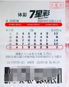 7月18日晚,中国体育彩票7星彩第25081期开奖结果公布,贵阳市的刘先生(化名)在观山湖区合力超市一门店(5201079729)购买的10元随机单式票,幸运中得当期一等奖1注,奖金高达500万元。刘先生是一位普通上班族,已有十多年购买彩票的经历,但始终坚持“理性参与、量力而行”的原则。他表示:“对我来说,买彩票不仅是生活的一种调剂,也是为公益贡献一份力量。”此次中奖号码完全是随机选择,原本只是一次随意的尝试,却带来了意外的惊喜。