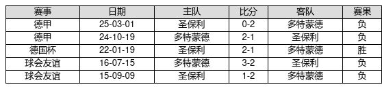 圣保利 VS 多特蒙德两队近10年的交战次数为5场,圣保利1胜0平4负,赢球概率为20.0%,平局概率为0.0%,输球概率为80.0%。