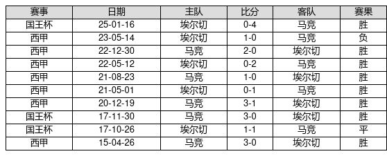 马竞 VS 埃尔切两队近10年的交战次数为10场,马竞8胜1平1负,赢球概率为80.0%,平局概率为10.0%,输球概率为10.0%。