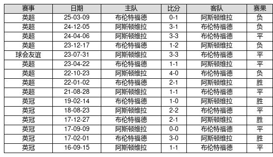 布伦特福德 VS 阿斯顿维拉两队近10年的交战次数为15场,布伦特福德4胜7平4负,赢球概率为26.7%,平局概率为46.7%,输球概率为26.7%。