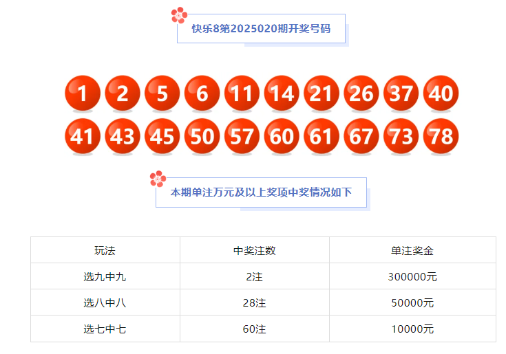 快乐8开出“选九中九”2注,每注奖金达到30万元