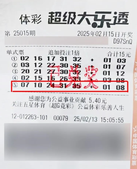 这张15元的体彩大乐透单式追加票是周先生随机购买的,中奖完全出乎意料。周先生坦言,虽然以前他会分析选号,但发现自己中奖的往往是机选票,后来他就放弃了研究,索性随意购买,这样既省心又不刻意,结果运气成了最大的赢家。