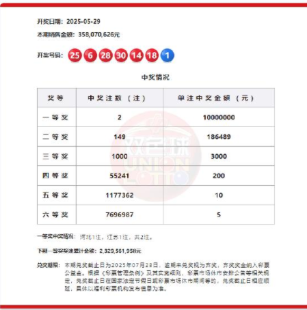 2025年5月29日北京时间,福彩双色球第25060期开奖结果如下: