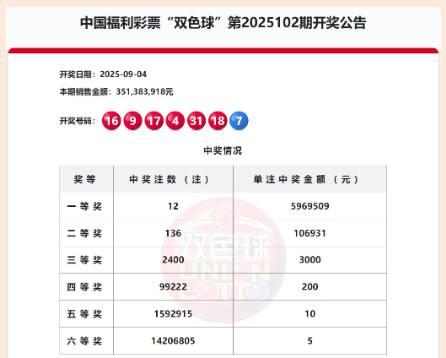 在幸运的九月,双色球再次传来喜讯!9月4日晚,福彩双色球第2025102期开奖,芜湖市一位购彩者仅花费10元购买自选票,便幸运中得双色球一等奖,收获了596万元的大奖。