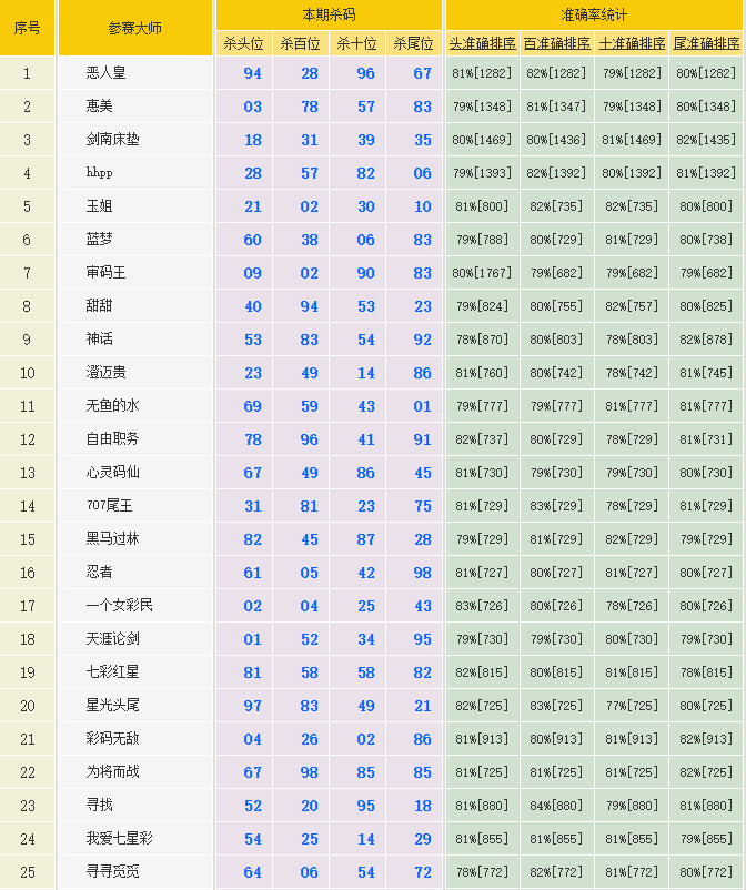 七星彩3239期特区杀二头二尾统 发表于:2025-09-13 16:55:25 浏览次数:414 上一篇:七星彩3239期特区杀一头一尾统计 下一篇:七星彩3239期特区杀三头三尾统计 【笑语】 范围码15红10 点播25326期 【天时地利】 范围码15红9 点播25326期 【无敌通杀】 范围码15红9 点播25326期 七星彩杀码荣誉榜