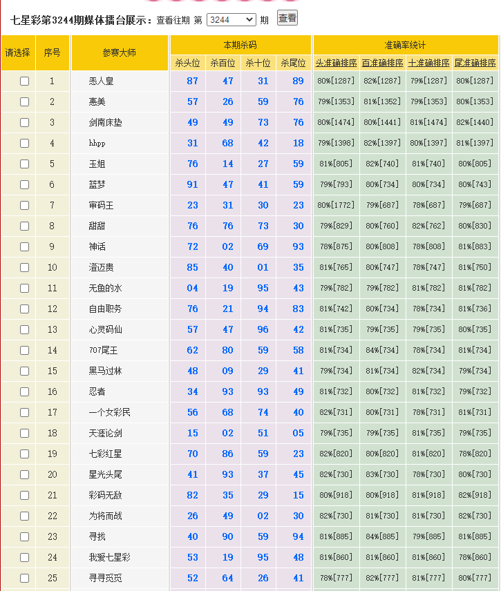 七星彩3244期特区杀二头二尾统计 发表于:2025-09-24 15:35:55 浏览次数:458 上一篇:七星彩3244期特区杀一头一尾统计 下一篇:七星彩3244期特区杀三头三尾统计 【春哥打奖】 范围码15红11 点播26030期 【天意人生】 范围码15红9 点播26030期 【彩女】 范围码15红9 点播26030期 七星彩杀码荣誉榜