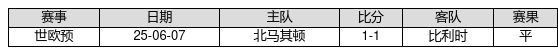 比利时 VS 北马其顿两队近10年的交战次数为1场,比利时0胜1平0负,赢球概率为0.0%,平局概率为100.0%,输球概率为0.0%。