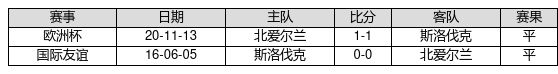 北爱尔兰 VS 斯洛伐克两队近10年的交战次数为2场,北爱尔兰0胜2平0负,赢球概率为0.0%,平局概率为100.0%,输球概率为0.0%。
